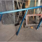 こちらの写真は丸パイプのジョイント方法の一例ですが、ジョイントパイプ(入れ子)を内径にいれ、差し込んでジョイントします。足元を固定すれば抜けることはありませんが、ジョイントした箇所をビス止めすればより丈夫になります。