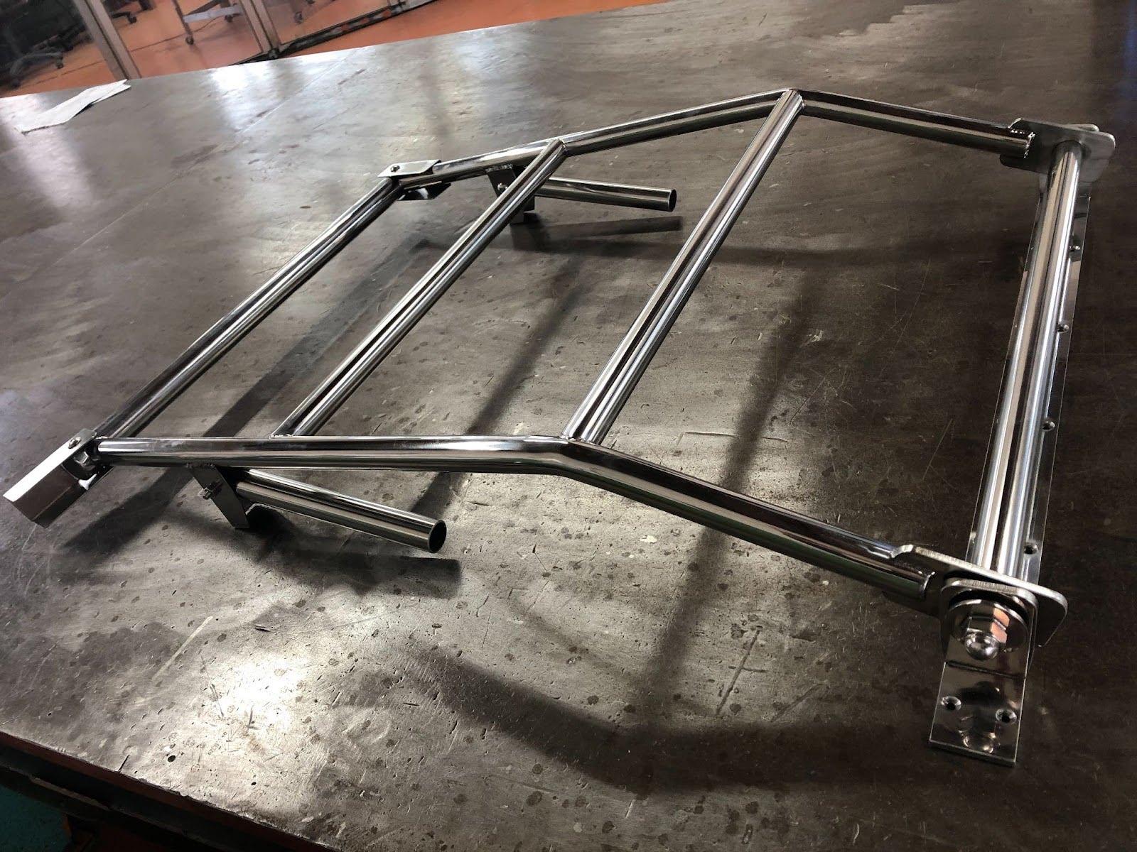 船底の曲面にあわせるため、何度も何度もお客様に寸法をはかっていただき、その都度作図してピッタリ合うように製作しました。また、完全に合うかわからないため、船の左右にあるラダーをまずは片方つくり送って合うか確かめたあと、もう一台製作しました。